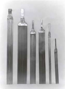 The patented Titanium Electrode is specially designed to greatly reduce lead sludge and conserve energy. When used in conjunction with our patented submerged bus bars, even greater energy savings may be realized. The Lead Clad Titanium Electrode with submerged bus bars and our platinum clad metal anode combination create almost perfect plating conditions, especially for chrome plating.